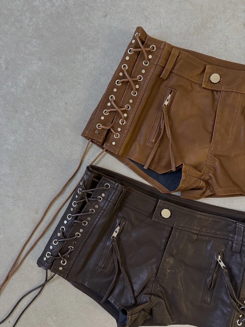 Short confeccionado en eco cuero, calidad premium, con tiras y tachas. Calce rígido. Producto importado.